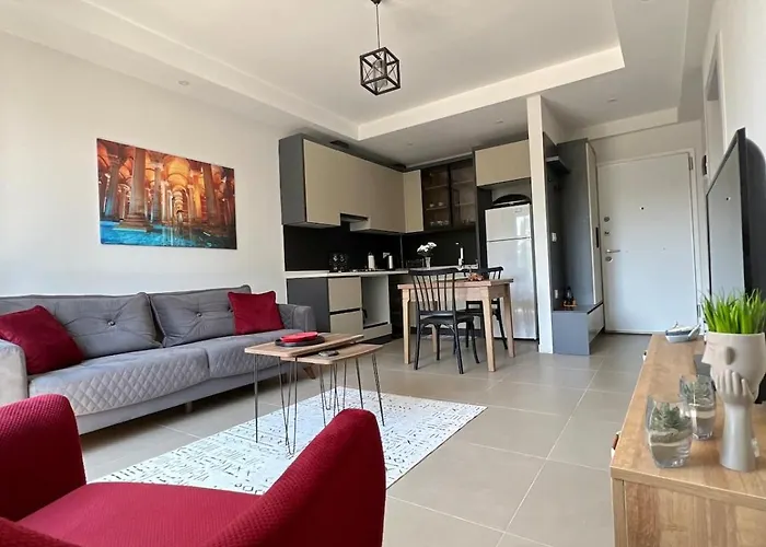 60m^2のアパ-トのお客様は台所を利用できます. 宿泊施設から400メ-トルくらい先のCinarでは地中海料理を楽しめます. ダラマン空港へも車で10分以内ですから,行きやすいです.